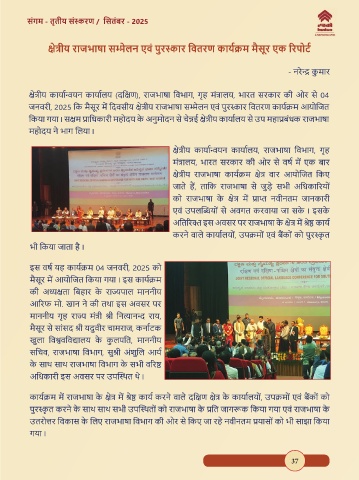 �त्रीय राजभाषा स�लन एव पर�ार िवतरण कायक्रम मसर एक �रपोट �