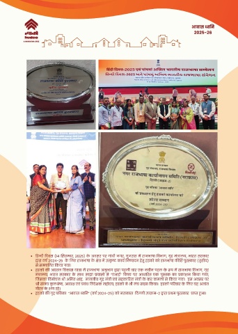 हडको क गृह प का “आवास व न” (वष 2024-25) को नराकास द ली उप म-2 ारा थम पुर कार ा त आ।
