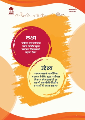 आवास न 2025-26 ल ँ “जीवन तर को ऊचा ु े उठान क लए स ढ़ े पया वास वकास को े बढ़ावा दना” उ े “जनमानस क आजी वका े े ु बदलाव क लए स ढ़ पया वास े वकास को बढ़ावा दत ए े अ णी तकनीक - व तीय सगठन म थान बनाना” ं 4