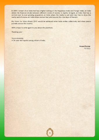In 2047, I dream of an India that has a higher ranking on the Happiness Index and Hunger Index, an India