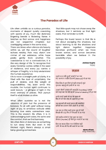 most ordinary of places. That pursuit सारे जहा का गम मरे कास (Kind of destiny) म आ गया