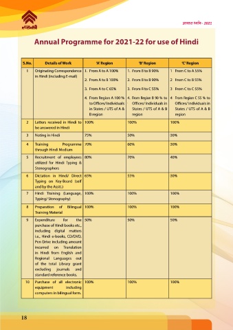 Annual Programme for 2021-22 for use of Hindi