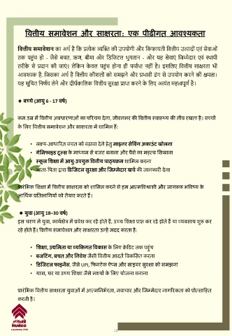 क े यलए त्रित्तीय समािशन और साक्षरता में शायमल ैं: