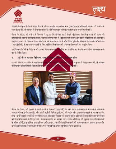 को व पो षत करने क लए हडको क साथ सहयोग का ताव रखा। इसक अ त र , डॉ. क मार ने इन प रयोजना