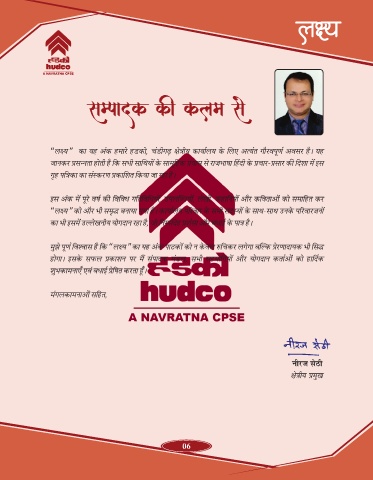 “ल य” का यह अंक हमार हडको, चंडीगढ़ े ीय काया लय क लए अ यंत गौरवपूण अवसर ह । यह