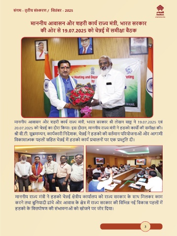 20.07.2025 को च�ई का दौरा िकया। इस दौरान, माननीय रा� मत्री न हडको काय� की समी�ा की।