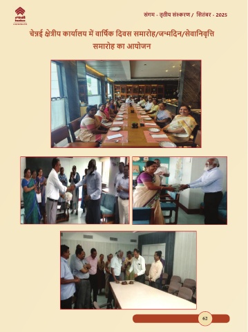 ं सगम - ततीय स�रण / �सतबर - 2025 ृ ं ं े े ृ च�ई �त्रीय कायालय म वािषक िदवस समारोह/ज�िदन/सवािनवि� े � � � समारोह का आयोजन 62