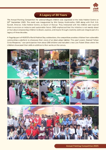 A flagship part of HUDCO’s World Habitat Day celebrations, the competition provides children from vulnerable