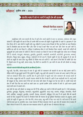 LFkkuh; Hkk"kk esa j[ks x, ukeksa esa izd`fr izse dh >yd