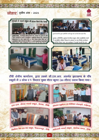 tksgkj r`rh; vad & 2025 jk¡ph {ks=h; dk;kZy;] }kjk gMdks lh-,l-vkj- varxZr >kj[k.M ds ik¡p Ldwyksa esa 3 LVst UV fQYVj ;qDr okWVj dwyj (80 yhVj) iznku fd;k x;kA 31
