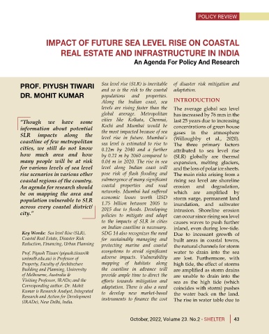 PROF. PIYUSH TIWARI Sea level rise (SLR) is inevitable of disaster risk mitigation and