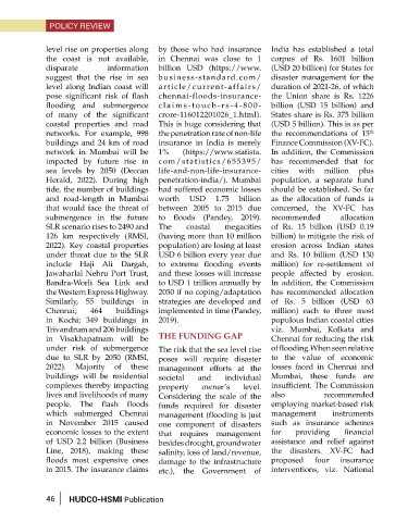 due to SLR by 2050 (RMSI, poses will require disaster to the value of economic