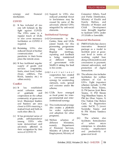 synergy and financial (vi) Support to USVs also Consumer Affairs, Food
