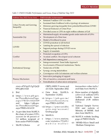 Table 2: PMSVANidhi Performance and Focus Areas of Habitat Day 2022