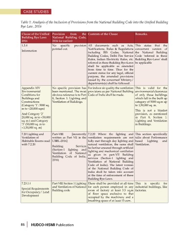 Table 1: Analysis of the Inclusion of Provisions from the National Building Code into the Unified Building